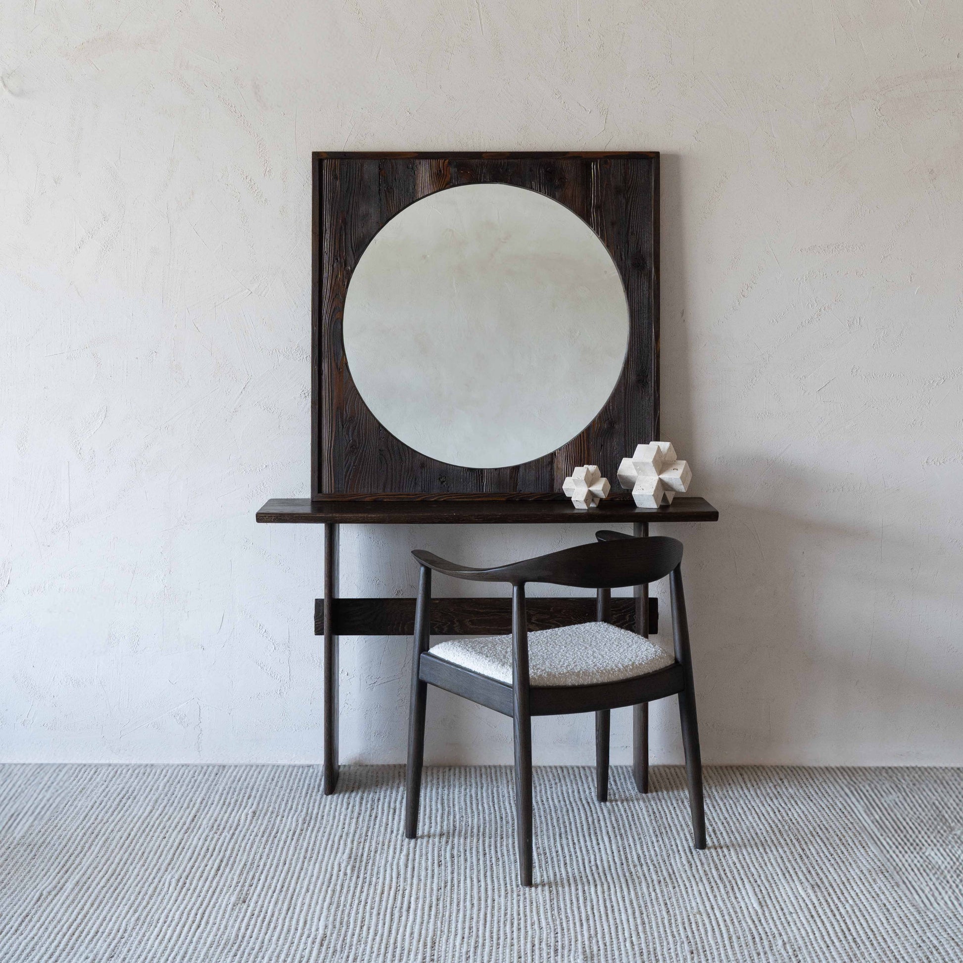 Submarine Solid Wood Mirror from WS LIVING - UAE. Our mirrors are crafted with solid wood and feature a unique square frame with a round mirror in the center. Find the perfect mirror to complement your style today!
